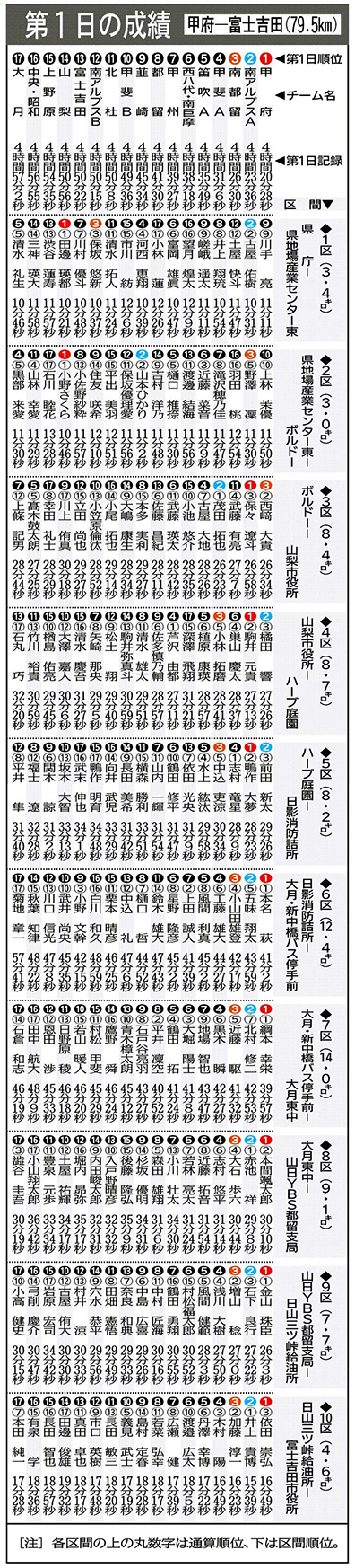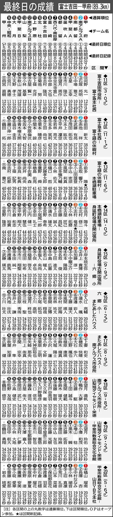 山梨日日新聞の県一周駅伝の特設ページ